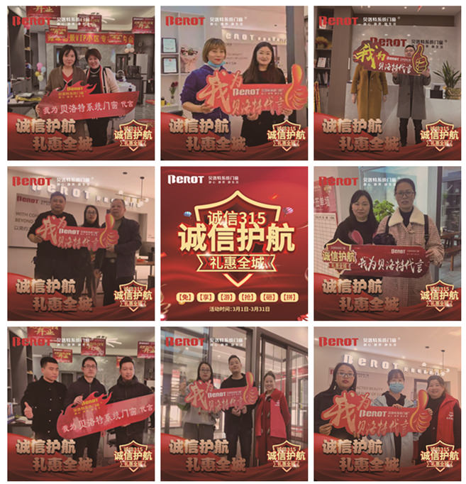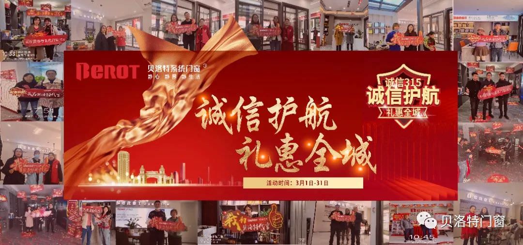 3月15日是國際消費者權(quán)益日,貝洛特系統(tǒng)門窗應(yīng)消費者需求,于3月1日至3月31日開展“誠信315·誠信護航·禮惠全城”活動,以答謝消費者長期以來對貝洛特系統(tǒng)門窗的信賴與厚愛。本活動全國同步開展,恭迎新老顧客進店選購。